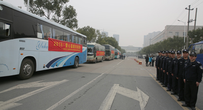 2月16日早上,公司南區大門前熱鬧非凡,企業為員工包的9部大客車一字排開,喜迎春節回家鄉過春節的404名外地員工踏上溫暖回家路。
