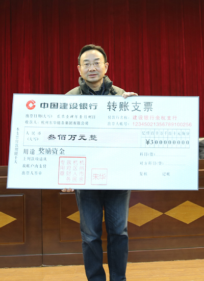 今年,余杭區(qū)只有東華集團和老板集團獲得“國家認定企業(yè)技術(shù)中心”稱號,杭州余杭高新園區(qū)孵化器公司獲得“國家級科技企業(yè)孵化器”稱號,三家單位各獲得區(qū)政府300萬元重獎。杭州市委常委、余杭區(qū)委書記徐立毅等領(lǐng)導向獲獎企業(yè)代表頒發(fā)了獎金,并作重要講話。