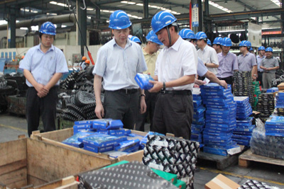 9月9日,余杭區(qū)區(qū)長(zhǎng)姜軍、副區(qū)長(zhǎng)屠冬冬率區(qū)政府辦、安全監(jiān)管局、經(jīng)發(fā)局、公安分局、質(zhì)監(jiān)余杭分局、貿(mào)易局、消防大隊(duì)、新聞媒體記者及余杭經(jīng)濟(jì)開發(fā)區(qū)相關(guān)科室負(fù)責(zé)人共十多人到我集團(tuán)進(jìn)行安全生產(chǎn)大檢查。集團(tuán)董事長(zhǎng)宣碧華、副總經(jīng)理廖杭州等高層陪同姜區(qū)長(zhǎng)一行對(duì)南區(qū)生產(chǎn)現(xiàn)場(chǎng)進(jìn)行了安全檢查。