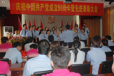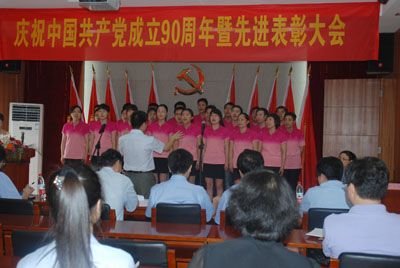會后,進行了紀念建黨90周年員工紅歌演唱會,來自各部門的5個合唱隊、12個獨唱和1個小品進行了激烈的角逐,經(jīng)過評審團公平公正的評分,最后評出了合唱和獨唱、小品前三等獎,與會領(lǐng)導向獲獎團隊和個人頒發(fā)了證書并合影留念。