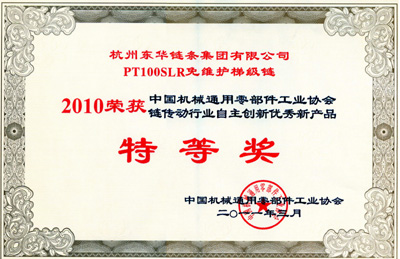 會(huì)上,中國機(jī)械通用零部件工業(yè)協(xié)會(huì)對2010年自主創(chuàng)新先進(jìn)企業(yè)及自主創(chuàng)新優(yōu)秀新產(chǎn)品進(jìn)行表彰。東華集團(tuán)被授予“2009~2010年度自主創(chuàng)新先進(jìn)企業(yè)”榮譽(yù)稱號(hào);東華集團(tuán)生產(chǎn)的“PT100SLR免維護(hù)梯級(jí)鏈”和“CL06F2齒形鏈”榮獲中國機(jī)械通用零部件工業(yè)協(xié)會(huì)鏈傳動(dòng)行業(yè)自主創(chuàng)新優(yōu)秀新產(chǎn)品特等獎(jiǎng);另有5個(gè)新產(chǎn)品榮獲自主創(chuàng)新優(yōu)秀新產(chǎn)品優(yōu)秀獎(jiǎng)。董事長助理、黨委書記張世強(qiáng)上臺(tái)領(lǐng)獎(jiǎng)。