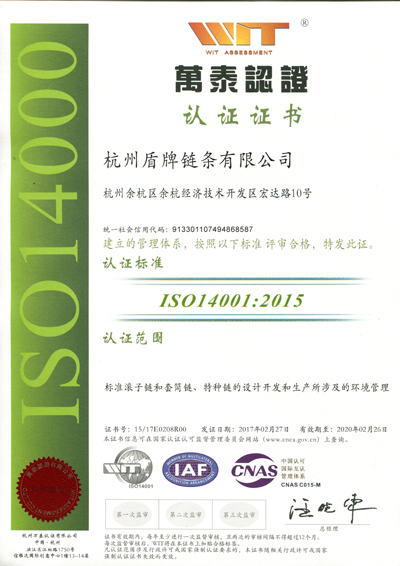 2015版本質量、環境管理體系認證為當前國際標準最新版認證。盾牌公司順利通過認證,代表著公司在標準滾子鏈和套筒鏈、特種鏈的設計開發和生產及其所涉及的環境管理在管理體系上走在了同行的前列,為進一步提升客戶服務、樹立品牌形象提供了更加有力的支撐。