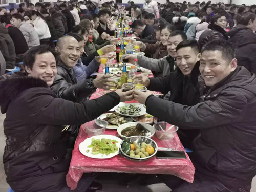每年春節(jié)都有因各種原因不能回家過年的外地員工留守,公司每年組織留守員工“同吃年夜飯,歡度除夕夜”。119日晚上,300多名天南海北的員工提前同舉酒杯,同吃水餃,共同祝福,明天會更好!工會主席魯小林、工會副主席劉冬根等領(lǐng)導現(xiàn)場向員工敬酒,表達了對大家的祝福,同時向參與員工發(fā)放了新年紅包。參與員工一邊同吃年夜飯,一邊上臺唱歌、跳舞,把活動推向高潮。