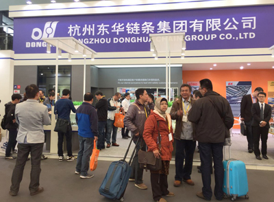 本屆展會上,東華總部與旗下盾牌公司、德國KOBO鏈條公司和日本EK公司同臺展出新品,展臺占地100多平方米,設計美觀、大氣。各公司均展出了最新的樣品,如總部的分動箱、板式鏈、工程鏈、農機鏈等;盾牌公司展出了各種規格的標準鏈條和非標鏈條;德國KOBO公司展出了德國制造的工程鏈條、洗瓶機鏈條等新產品;日本EK公司展出了日本制造的輸送鏈、密封圈鏈條、沖壓印刷機鏈條等。這些精良的產品代表了當前各公司高端的制造水平,吸引了無數國內外新老客戶及參觀者的眼光。